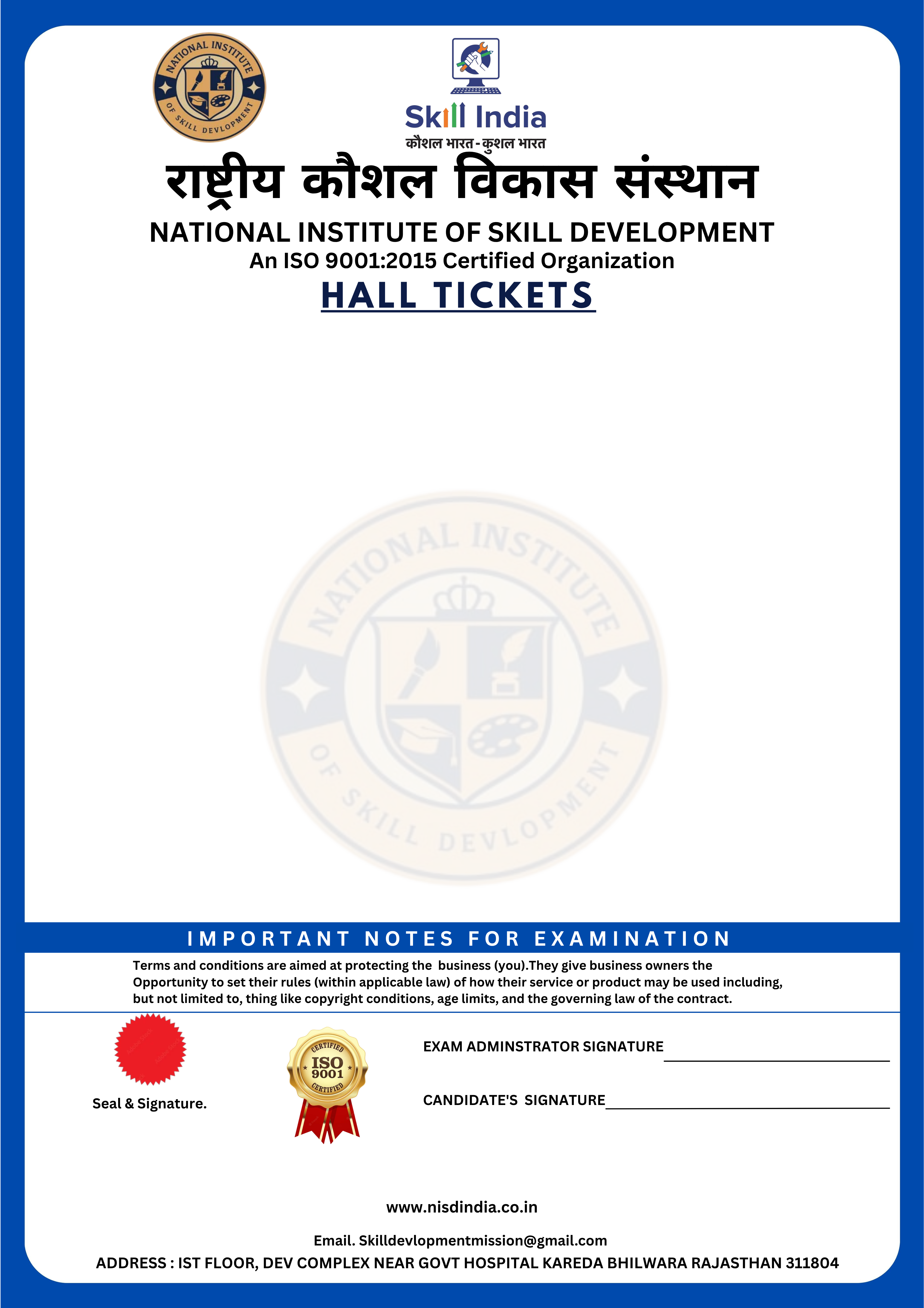 HALL TICKET